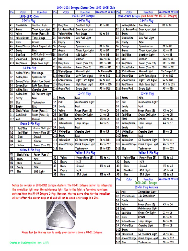 94 97 98 01 Integra Cluster Into 92 95 96 00 Civic Wiring Diagrams Honda Tech Honda Forum Discussion